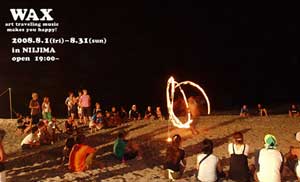 ![]() 【ご紹介】 秋に新島にてフリーのイベントを開催されるそうです。 http://www.thirdculture.tv/wonderland/ 新島に縁のある3人 サードカルチャー主宰 「ブライアン・バートン・ルイス」 キャンドルアーティスト「Candle JUNE」 WAX主宰のK-39の3人で今回のイベントを オーガナイズします。 ![]() ![]() ![]() ![]() ![]() 純粋に新島への思いで開催されるイベントです。 多くの人達に新島へ足を運んで頂きたく、その結果、フリーパーティーという結果に達したそうです。 出演者の方々にも、イベント主旨に賛同して頂き、今回の出演という形となっています。 シート加工の依頼お受け致しました。 【主宰者のコメント】 多くの方々の支援なくして成り立たないのが」現状です。 もし、少しでもこのイベント活動に対して興味を持って頂けたら、どんな形でもかまいませんので ご一報頂けると幸いです。 このイベントがきっかけとなり、何か良いムーブメントが新島に起こる事を切に願い、 イベントが成功することを期待しています。 WAX K-39 |